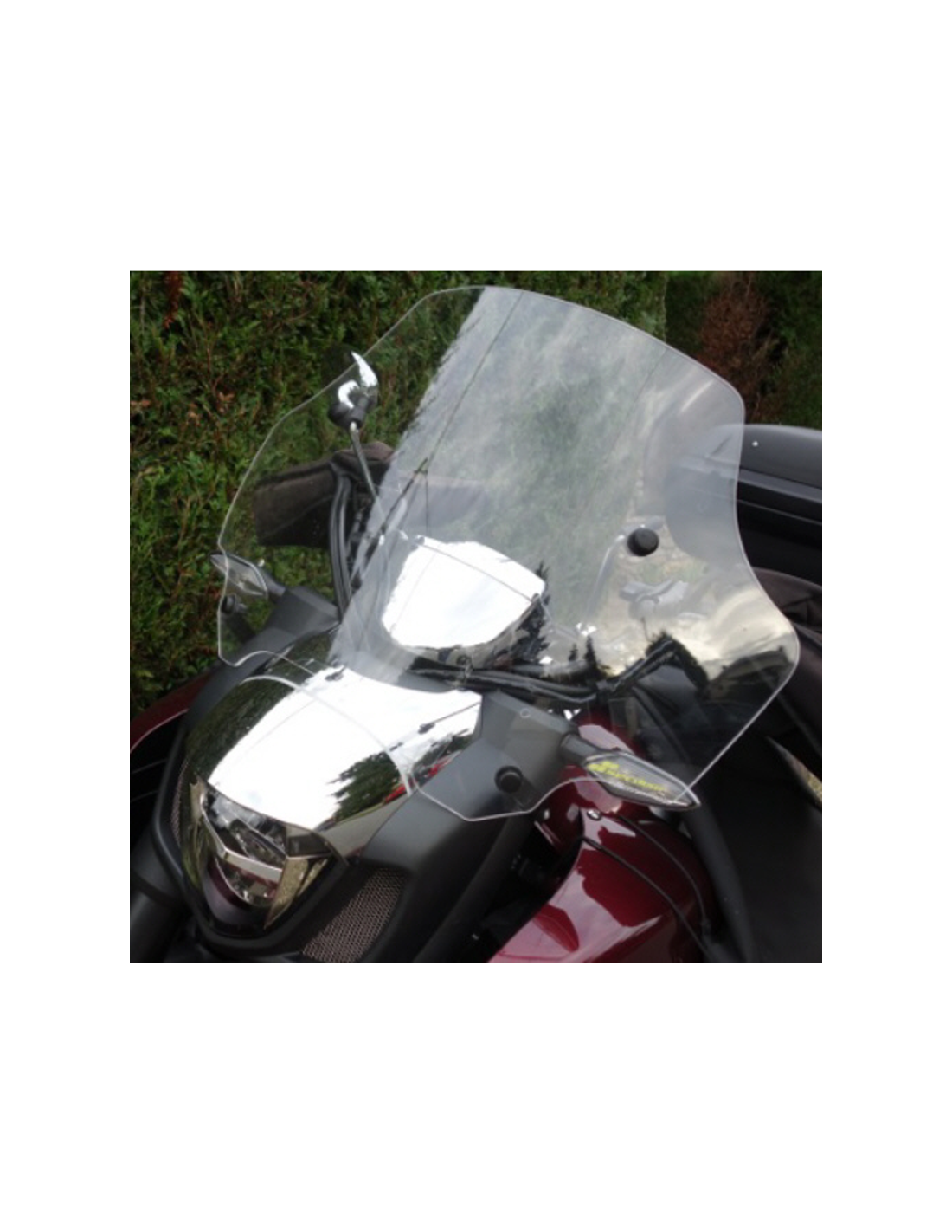 Une bulle à double courbure présente une conception unique avec une base similaire à celle de la bulle d'origine, tandis que sa partie supérieure comporte un profil décalé et surélevé. Cette caractéristique offre une protection accrue au pilote tout en conservant l'esthétique de la moto.