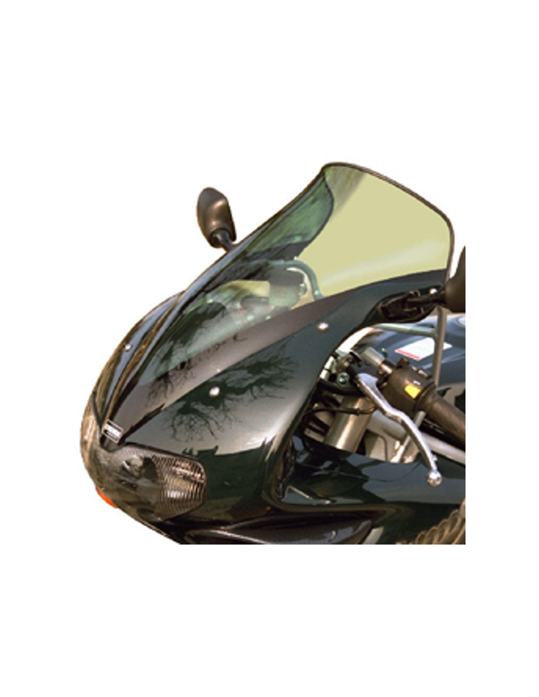 Une bulle à double courbure présente une conception unique avec une base similaire à celle de la bulle d'origine, tandis que sa partie supérieure comporte un profil décalé et surélevé. Cette caractéristique offre une protection accrue au pilote tout en conservant l'esthétique de la moto.