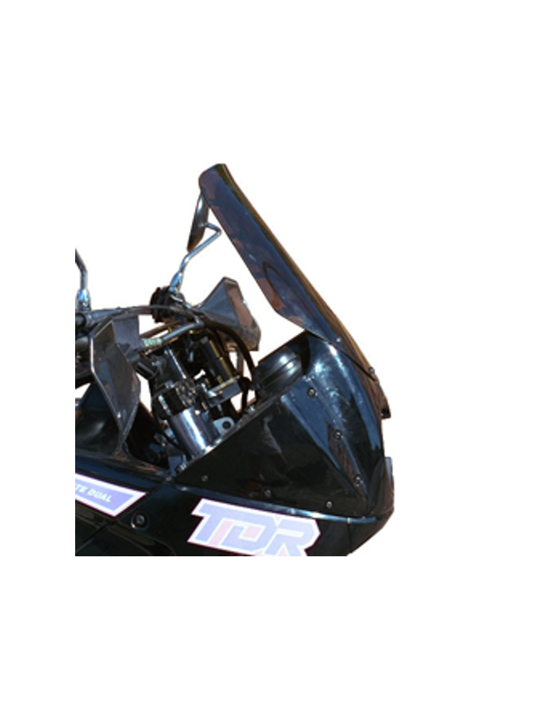 Une bulle à double courbure présente une conception unique avec une base similaire à celle de la bulle d'origine, tandis que sa partie supérieure comporte un profil décalé et surélevé. Cette caractéristique offre une protection accrue au pilote tout en conservant l'esthétique de la moto.